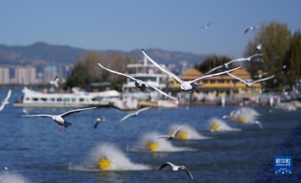 近日,大批紅嘴鷗陸續抵達春城昆明,吸引游人前來觀賞。