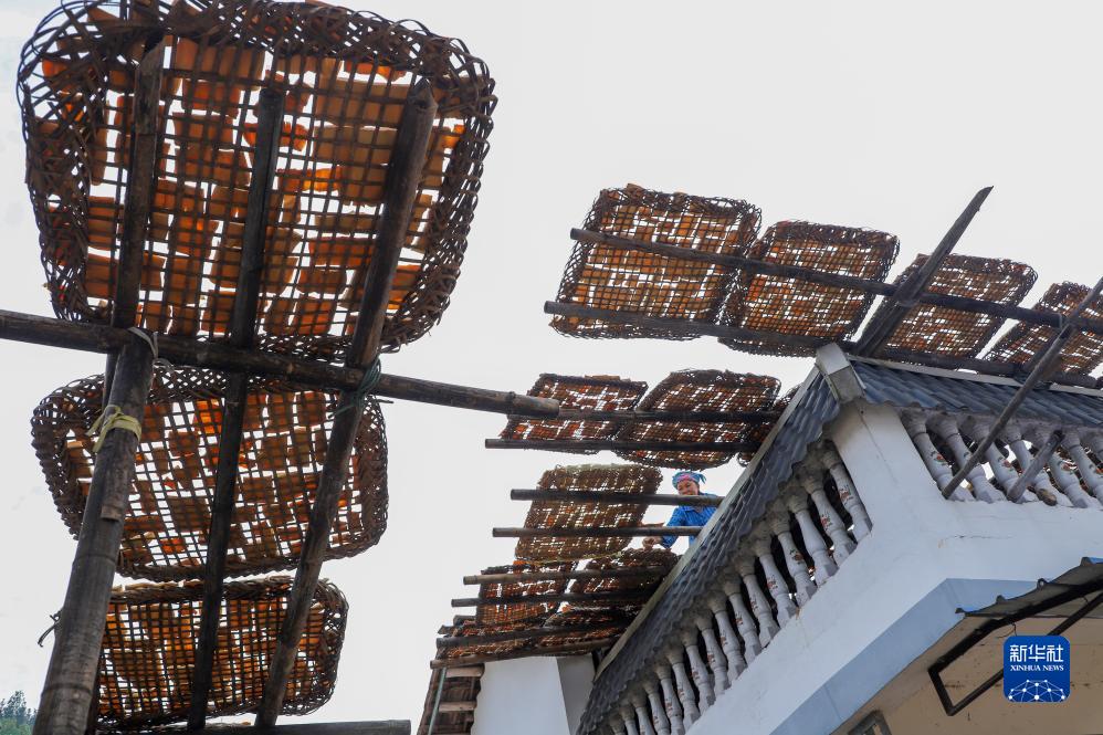 11月3日,在廣西田林縣六隆鎮平細村,村民在曬八渡筍。