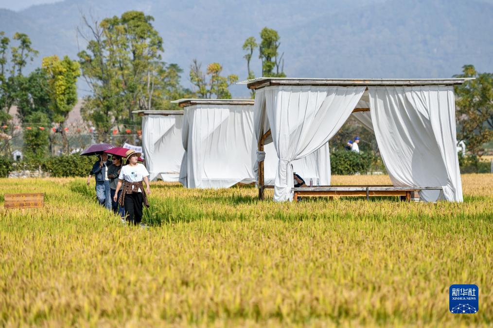 11月3日,游客在位于黃梅縣大河鎮的袁夫稻田游玩。