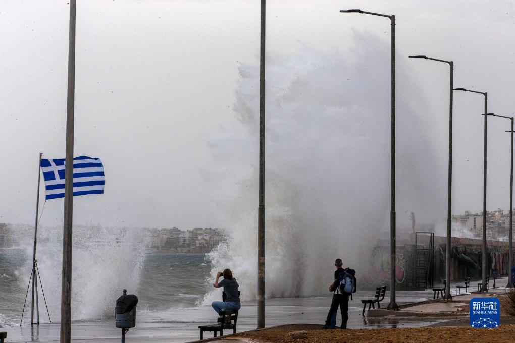 這是11月4日在希臘雅典海邊拍攝的大浪。
