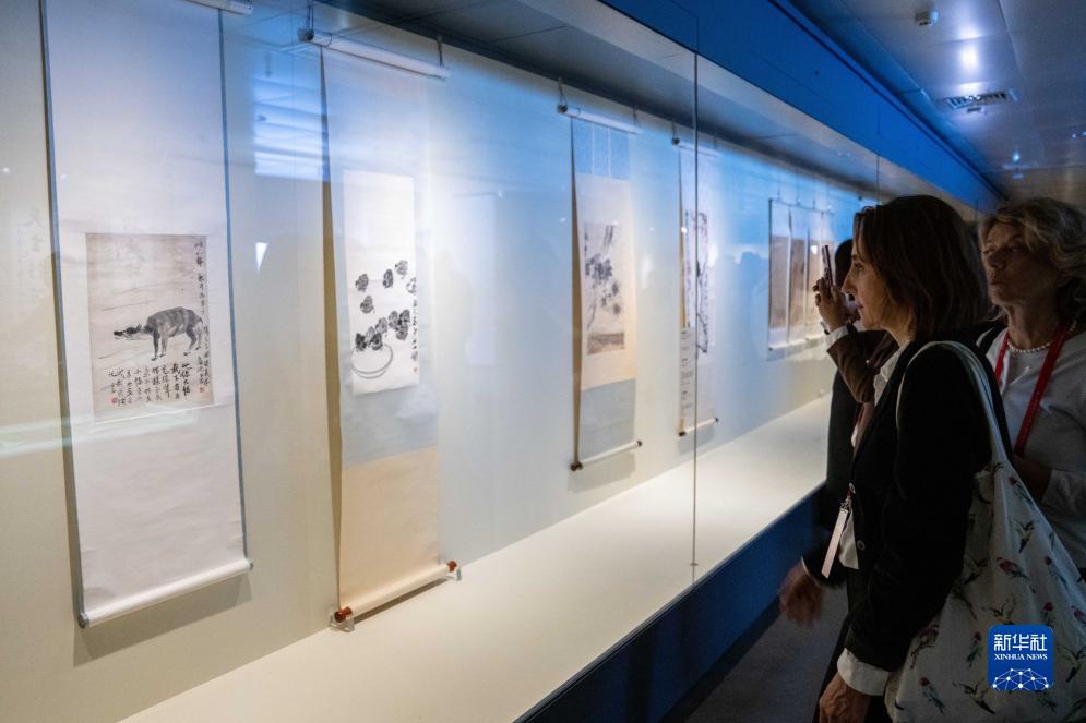 11月5日,在湘潭市博物館,觀眾在觀看齊白石作品。