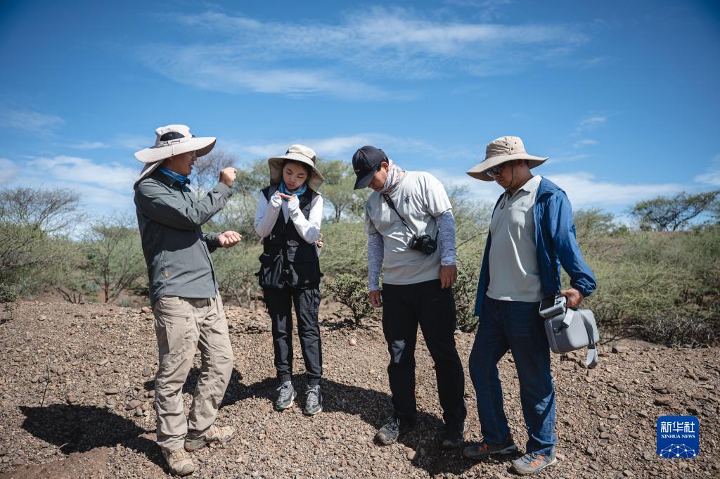 11月4日,中肯聯合考古隊隊員在位于肯尼亞巴林戈郡馬里加特鎮的考古現場周邊區域進行野外調查。