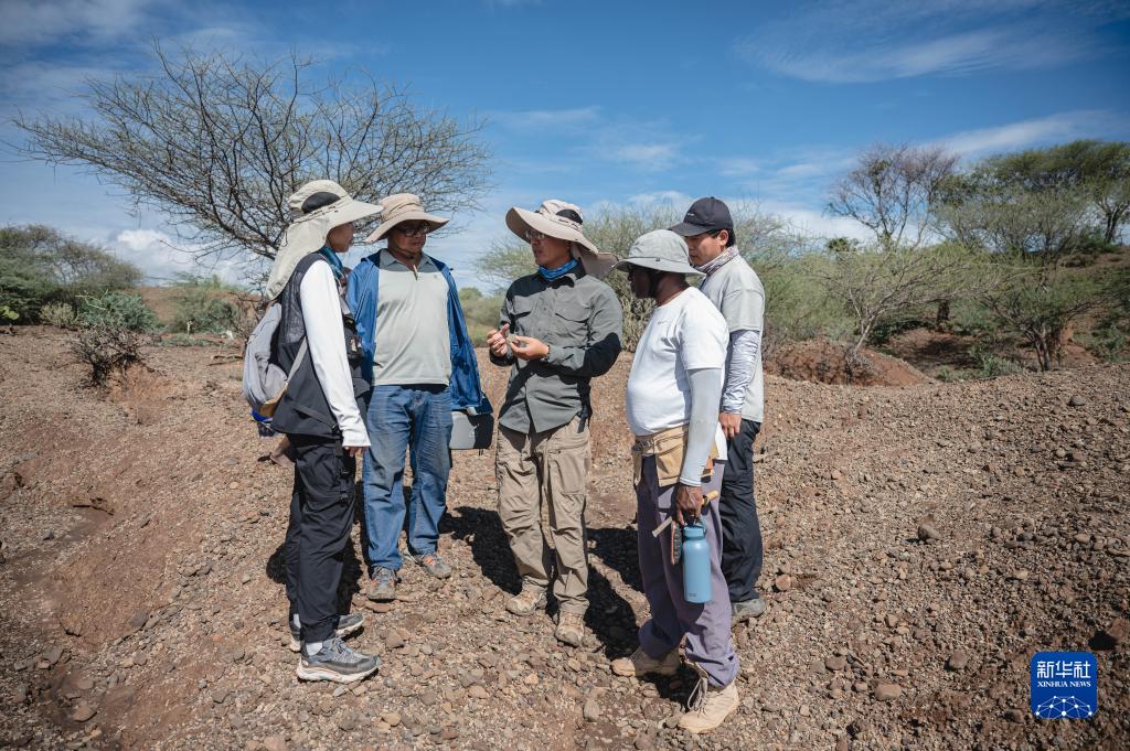 11月4日,中肯聯合考古隊隊員在位于肯尼亞巴林戈郡馬里加特鎮的考古現場周邊區域進行野外調查。