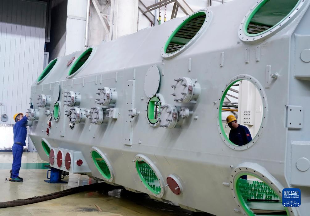 11月5日,工人在秦皇島經(jīng)濟(jì)技術(shù)開發(fā)區(qū)天威保變(秦皇島)變壓器有限公司的生產(chǎn)車間工作。
