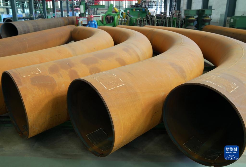 11月5日,工人在秦皇島經濟技術開發區中石油寶世順(秦皇島)鋼管有限公司彎管生產車間工作。
