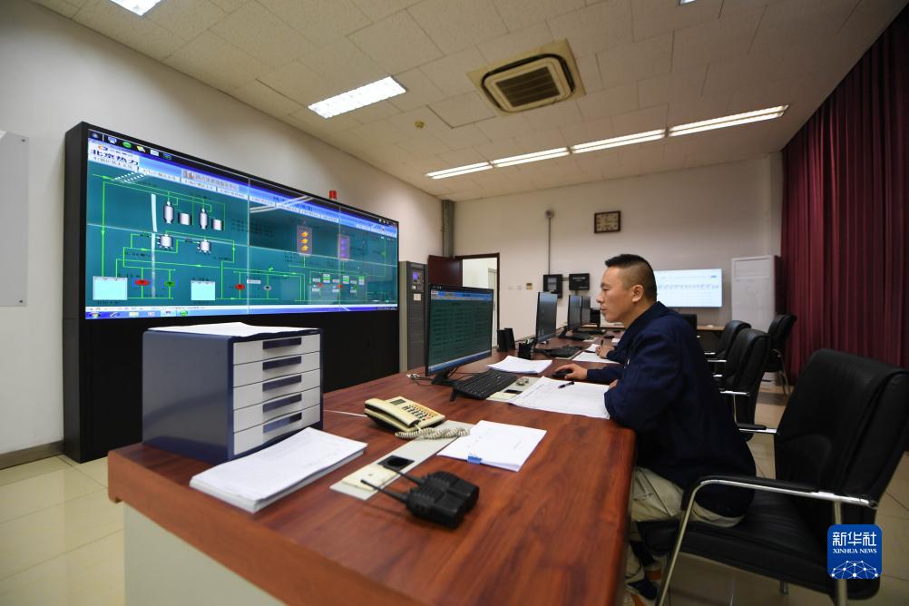11月6日,北京市熱力集團有限責任公司海淀分公司的技術人員在控制燃氣供熱設備運行。
