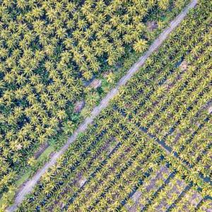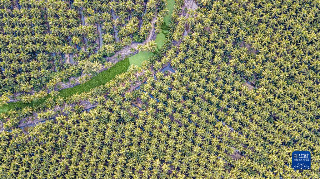 這是11月3日在泰國叻武里府丹嫩沙多拍攝的椰子園(無人機照片)。