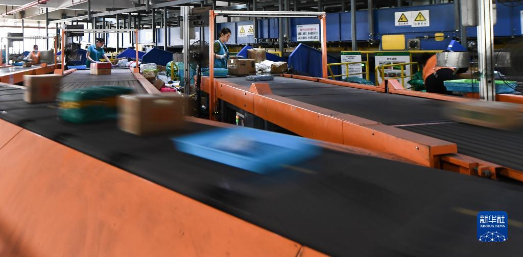 11月6日,在中國郵政集團(tuán)有限公司??卩]區(qū)中心,工作人員在分揀包裹。