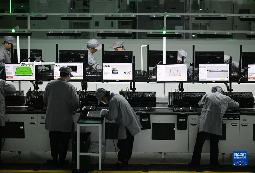 11月6日,工作人員在聯想集團創新產業園(天津)筆記本生產線作業。