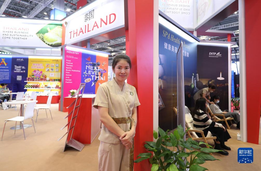 11月6日,來(lái)自泰國(guó)的寶拉站在泰國(guó)國(guó)家館展臺(tái)前。寶拉來(lái)中國(guó)八個(gè)月,目前在上海一家泰式按摩店工作,她為能代表泰國(guó)參加進(jìn)博會(huì)感到自豪。