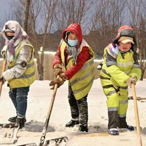 11月6日,工人在哈爾濱友誼西路上鏟除積雪。