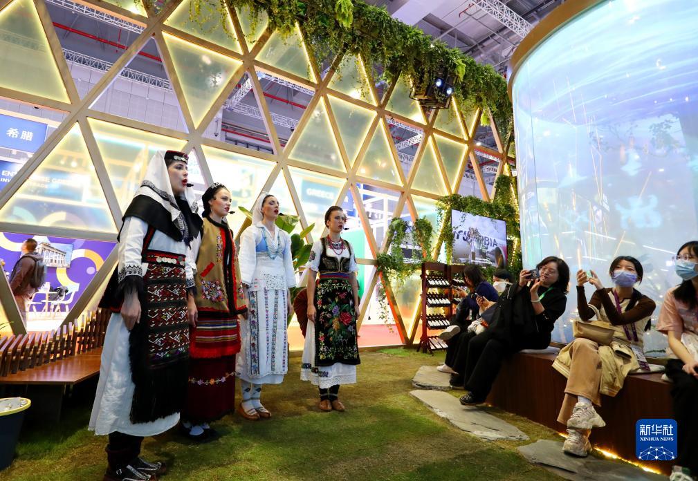 11月6日,演職人員在第六屆進博會國家展塞爾維亞展臺演唱傳統歌曲。