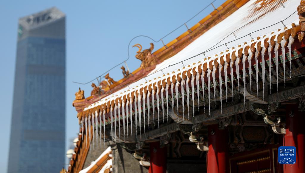這是11月7日拍攝的雪后沈陽故宮一處屋檐。