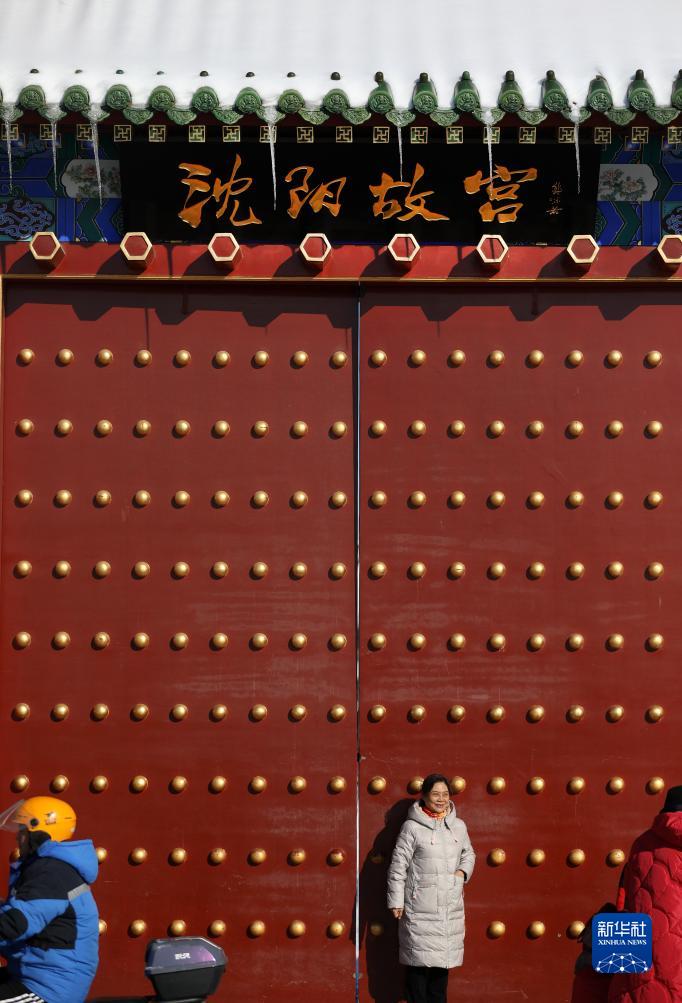 11月7日,游客在沈陽故宮門前拍照留影。