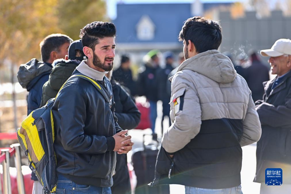 出境旅客在新疆紅其拉甫口岸等候辦理通關手續(11月6日攝)。