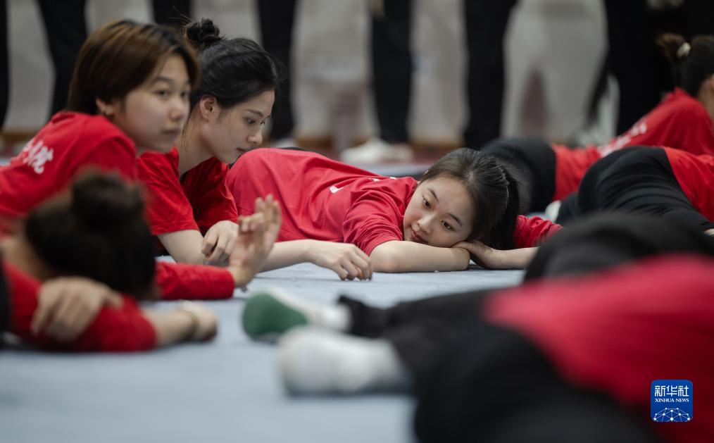 10月30日,漢劇演員鄒雨含(右)、鄧文婷(中)、戴欣苡在練功。