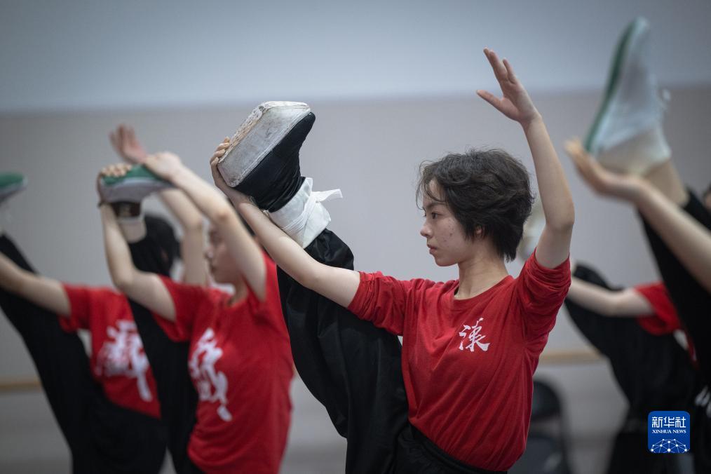 10月30日,2004年出生的漢劇演員宋子欣在練功。