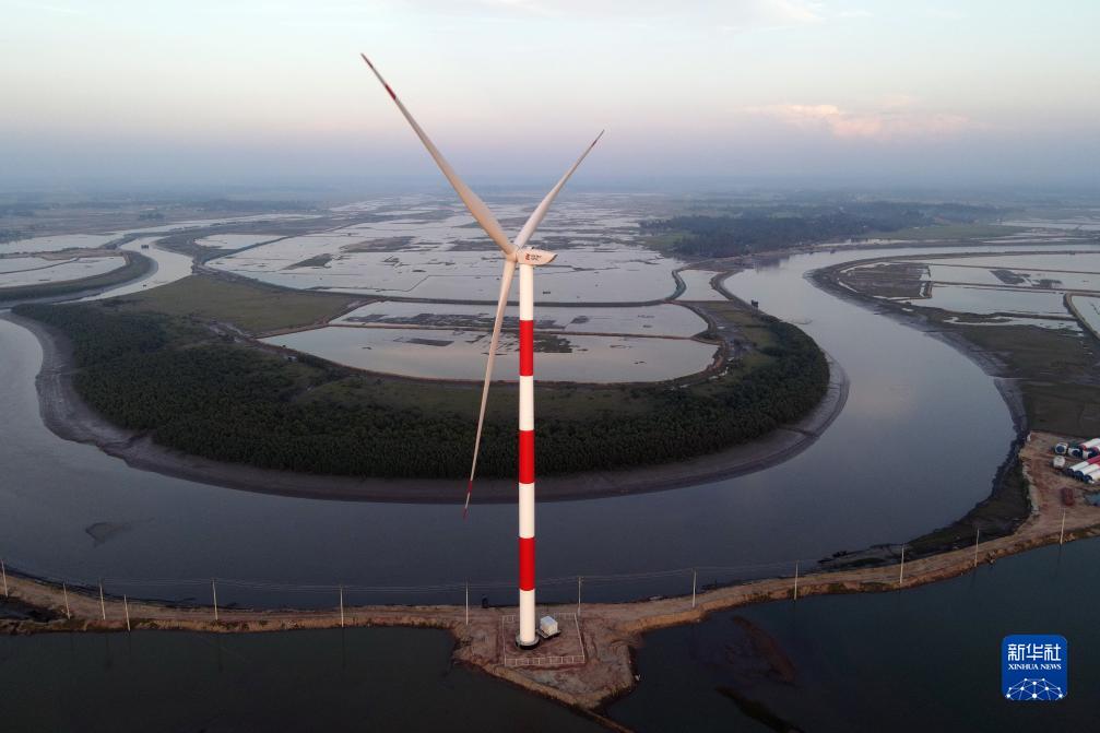 這是10月30日拍攝的孟加拉國(guó)科克斯巴扎爾風(fēng)電項(xiàng)目現(xiàn)場(chǎng)(無人機(jī)照片)。