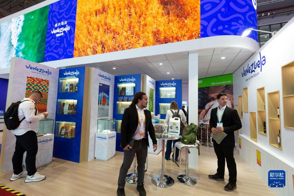 11月6日在第六屆進(jìn)博會(huì)國家展拍攝的委內(nèi)瑞拉展臺(tái)。