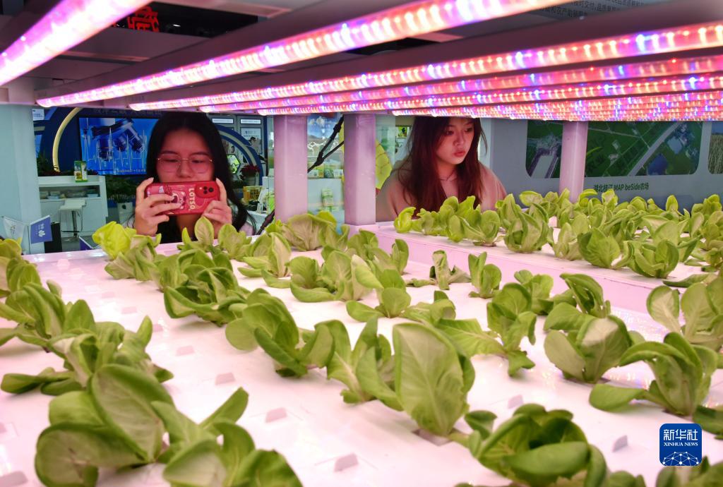 11月9日,觀眾在展會上拍攝“燈照蔬菜”。