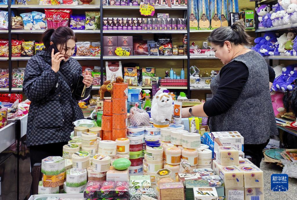 11月7日,游客在巴克圖口岸中哈邊民互市絲路文化商品城選購商品。