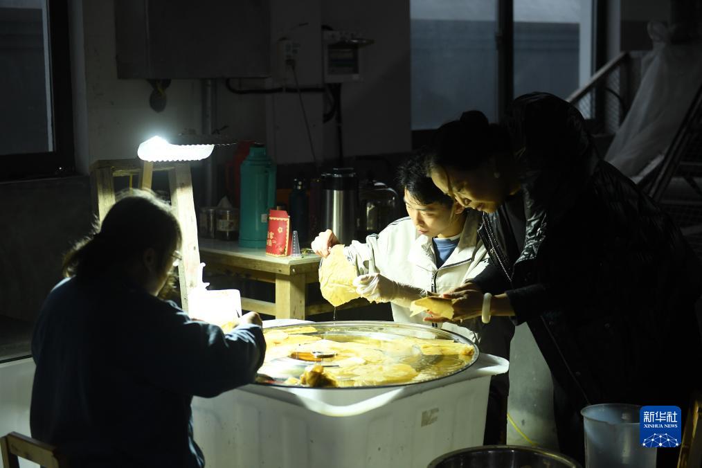 11月9日,工作人員在開化紙傳統技藝工坊制紙。