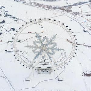 這是11月9日拍攝的位于哈爾濱冰雪大世界園區(qū)內(nèi)的雪花摩天輪(無(wú)人機(jī)照片)。