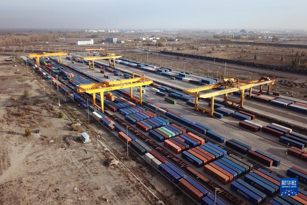 霍爾果斯鐵路口岸站(無人機照片,11月8日攝)。
