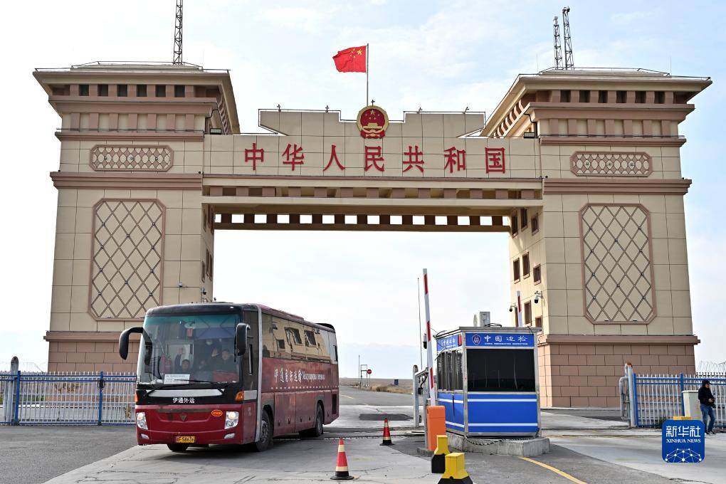 11月9日,一輛客車從都拉塔口岸國門駛?cè)胫袊?/p>