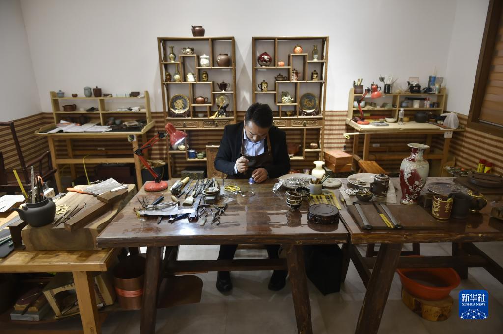 河南省郟縣金鑲玉制作技藝是國家級非物質文化遺產代表性項目,歷史悠久,獨具文化內涵和藝術價值。據介紹,金鑲玉制作技藝原為對有瑕疵或破損的玉石、茶具等器物,用銅、錫等金屬絲片進行掩飾、修補的鑲嵌工藝,后來逐步發展成為在陶瓷、紫砂等器物表面鑲嵌不同金屬(或合金)圖紋裝飾的獨特工藝。