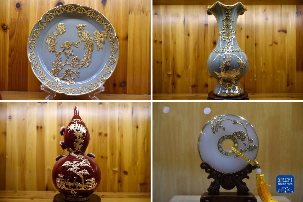 河南省郟縣金鑲玉制作技藝是國(guó)家級(jí)非物質(zhì)文化遺產(chǎn)代表性項(xiàng)目,歷史悠久,獨(dú)具文化內(nèi)涵和藝術(shù)價(jià)值。據(jù)介紹,金鑲玉制作技藝原為對(duì)有瑕疵或破損的玉石、茶具等器物,用銅、錫等金屬絲片進(jìn)行掩飾、修補(bǔ)的鑲嵌工藝,后來(lái)逐步發(fā)展成為在陶瓷、紫砂等器物表面鑲嵌不同金屬(或合金)圖紋裝飾的獨(dú)特工藝。