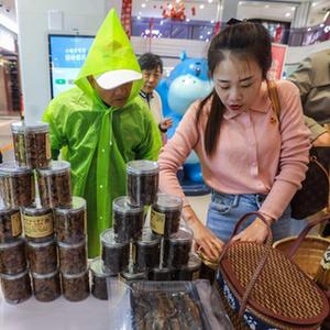 11月10日,杭州市民在“清涼峰味”共富品牌推介會上品嘗和選購特色農產品。