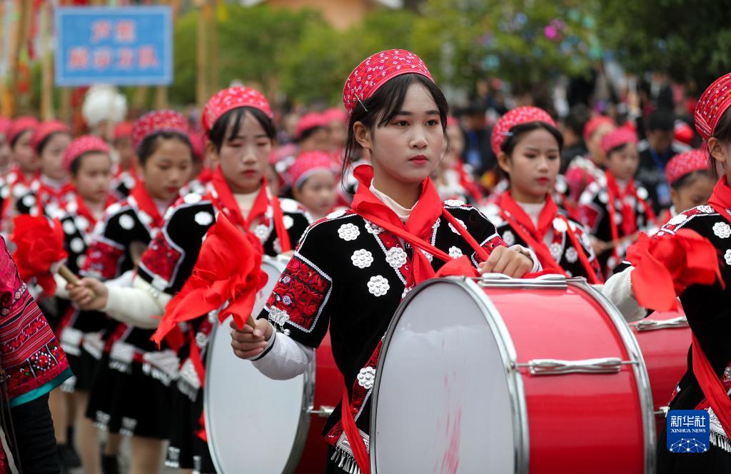 11月10日,學(xué)生儀仗隊(duì)在蘆笙節(jié)上巡游。