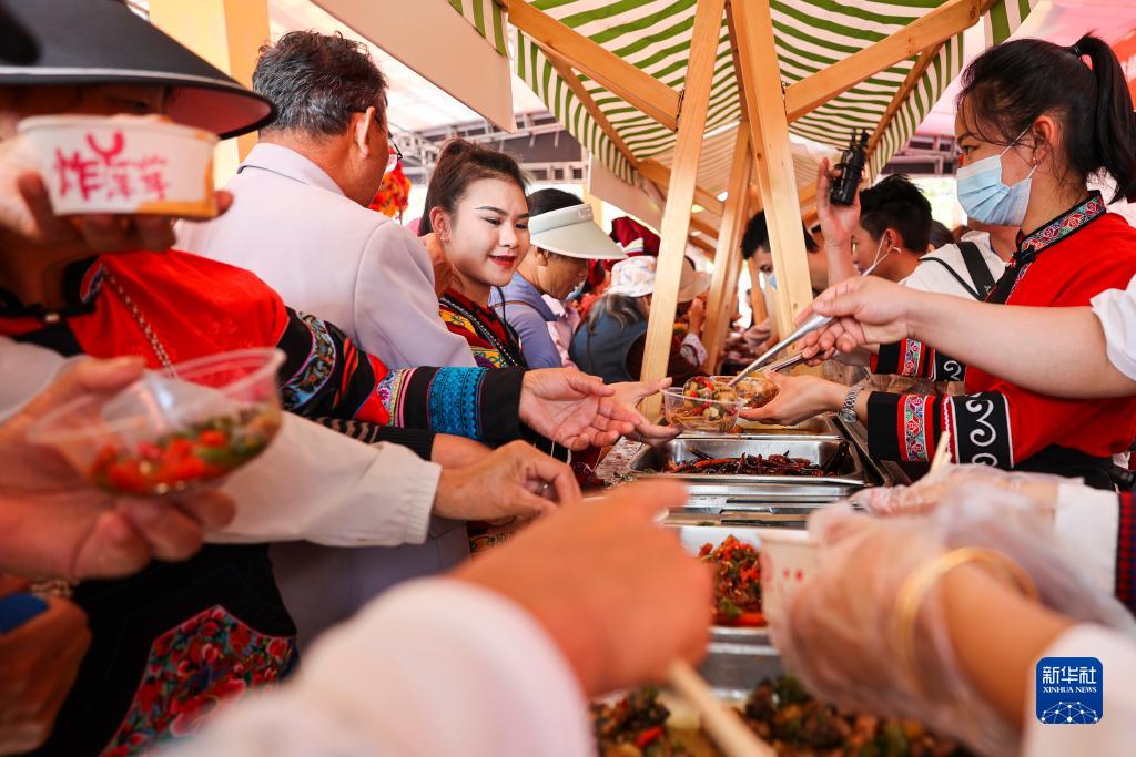 11月10日,游客在丘北辣椒節(jié)上品嘗美食。