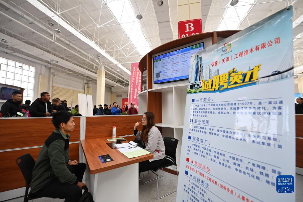 11月10日,求職者在招聘會現(xiàn)場與用人單位交流。