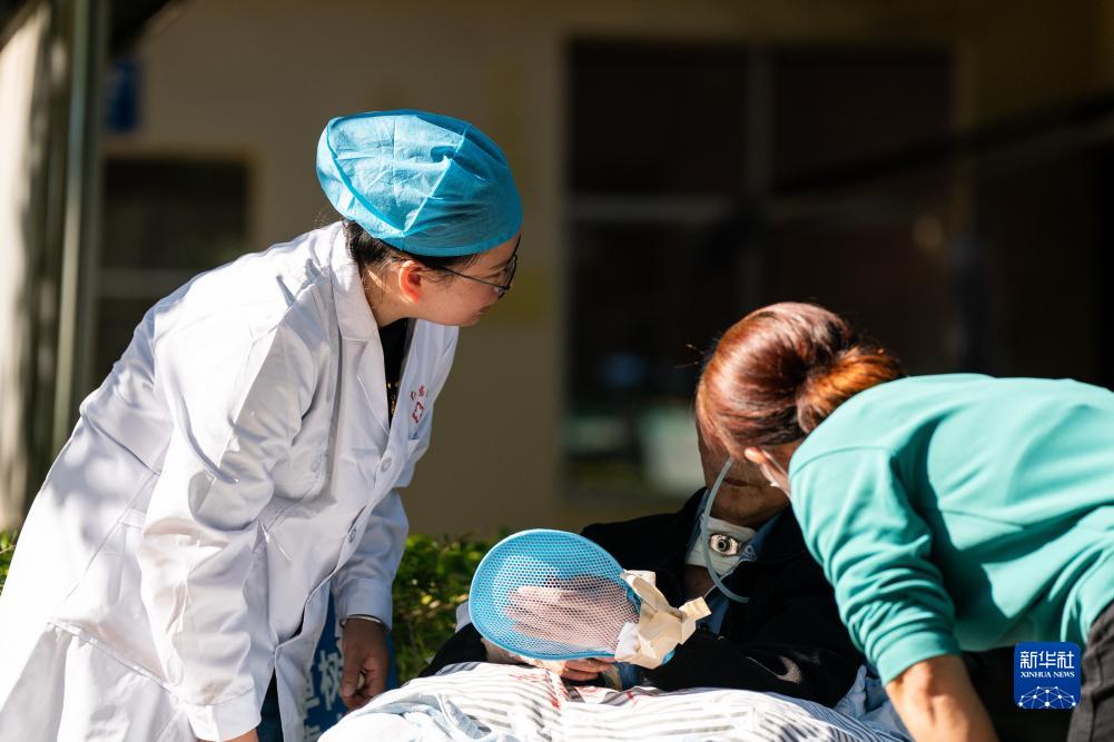 在畹町仁慈醫院,醫務人員在照顧一名住院的老人(10月29日攝)。