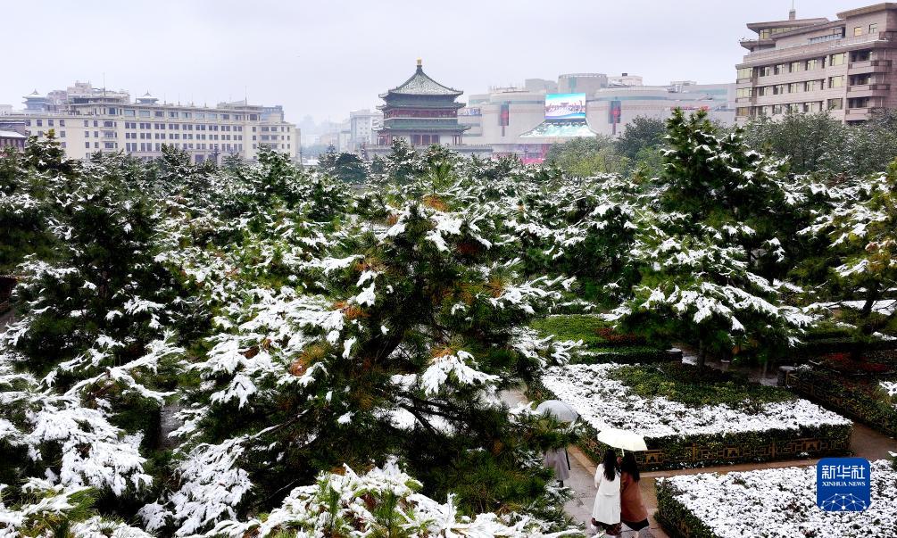 當(dāng)日,陜西省西安市迎來立冬以來首場(chǎng)降雪,白雪掩映下的古都古樸寧靜。