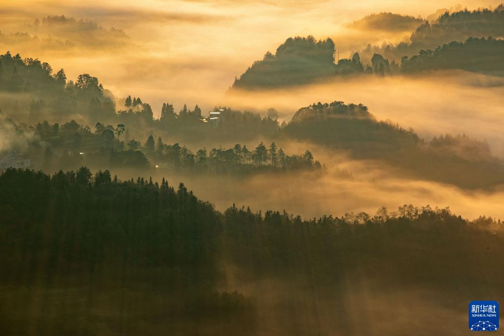 這是11月1日在貴州省遵義市正安縣拍攝的山間晨霧景色。