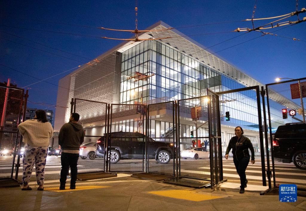11月10日,在美國舊金山,亞太經合組織會議場地外豎起金屬圍欄。
