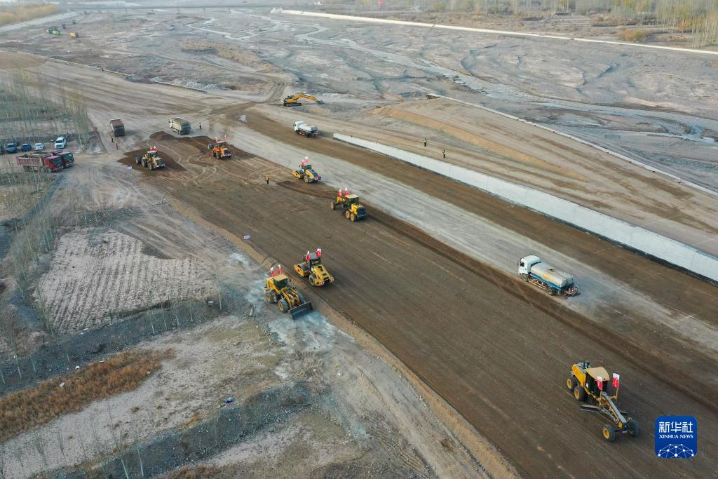 這是11月8日拍攝的G315線托帕至吐爾尕特口岸公路建設項目施工現場,項目建成后將提高口岸通關運輸效率(無人機照片)。