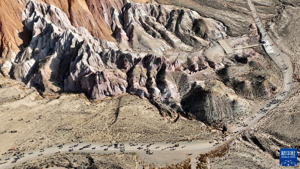 11月11日,人們在張掖外星谷星際主題地質公園參加徒步活動(無人機照片)。