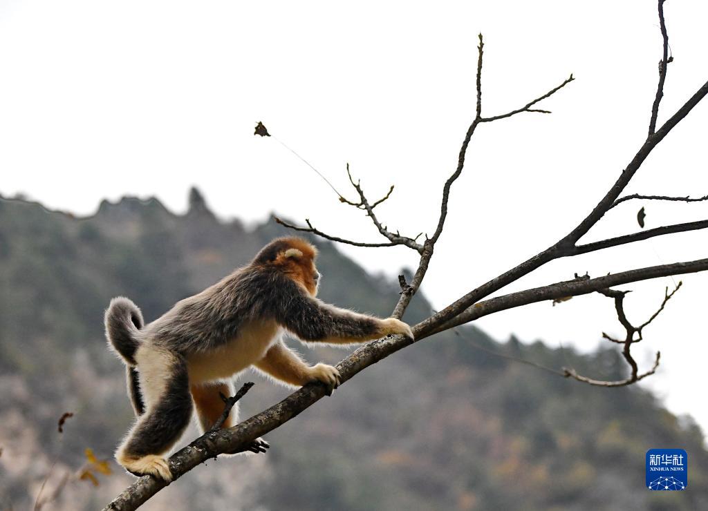 11月11日在四川白河國家級自然保護區拍攝的野生川金絲猴。