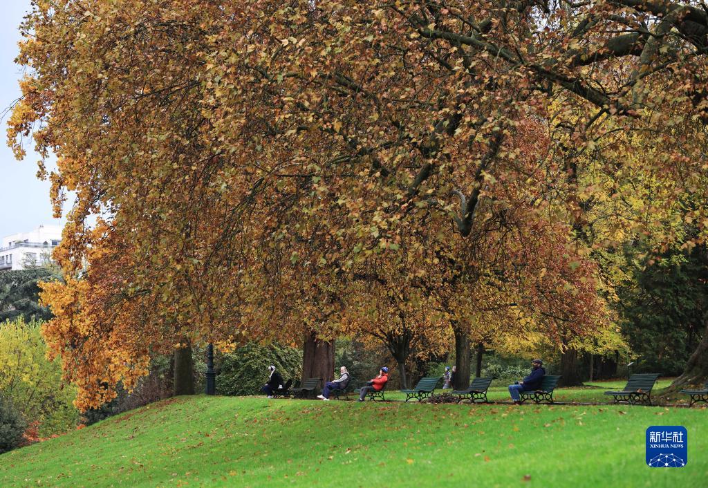 11月12日,人們在法國巴黎蒙蘇里公園欣賞秋色。