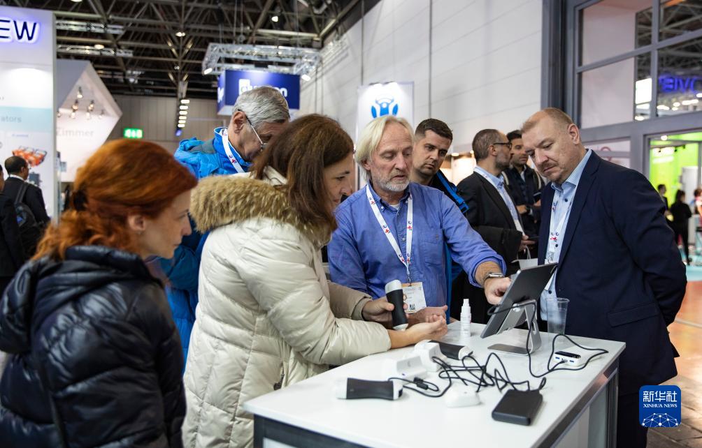 11月13日,參觀者在德國杜塞爾多夫國際醫療器械設備展上體驗設備。新華社記者 張帆 攝