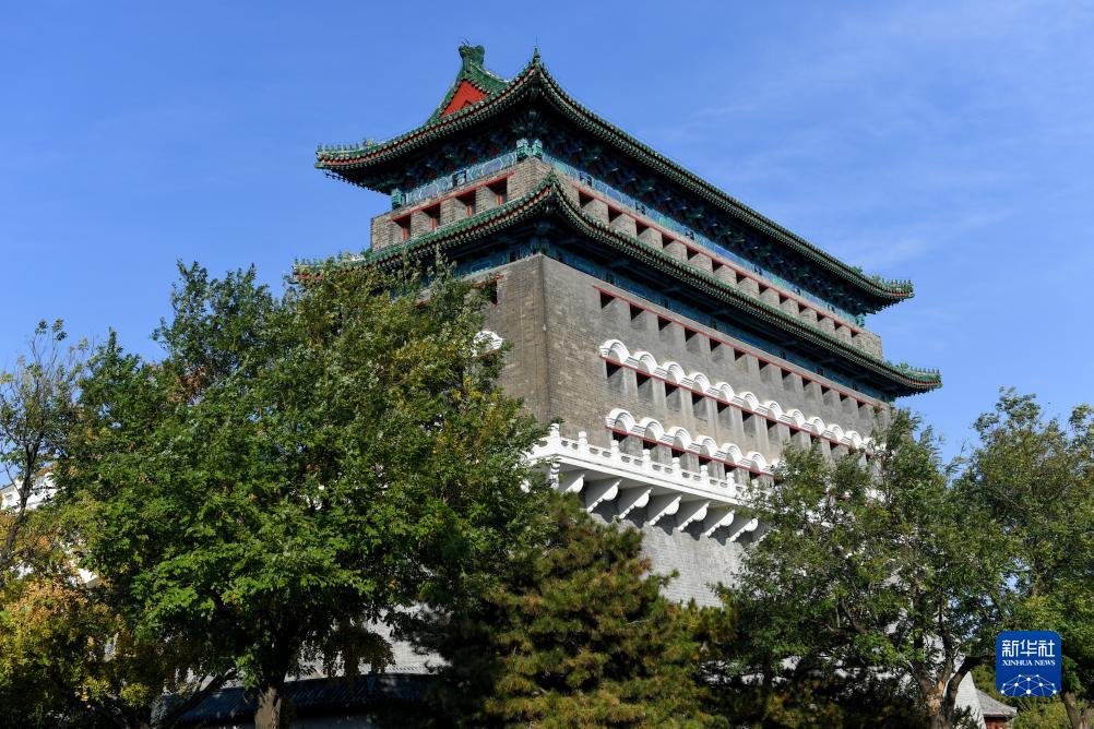 秋日北京,天高云淡。北京中軸線上的古老的文物建筑與色彩斑斕的秋葉相互映襯,美不勝收。