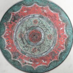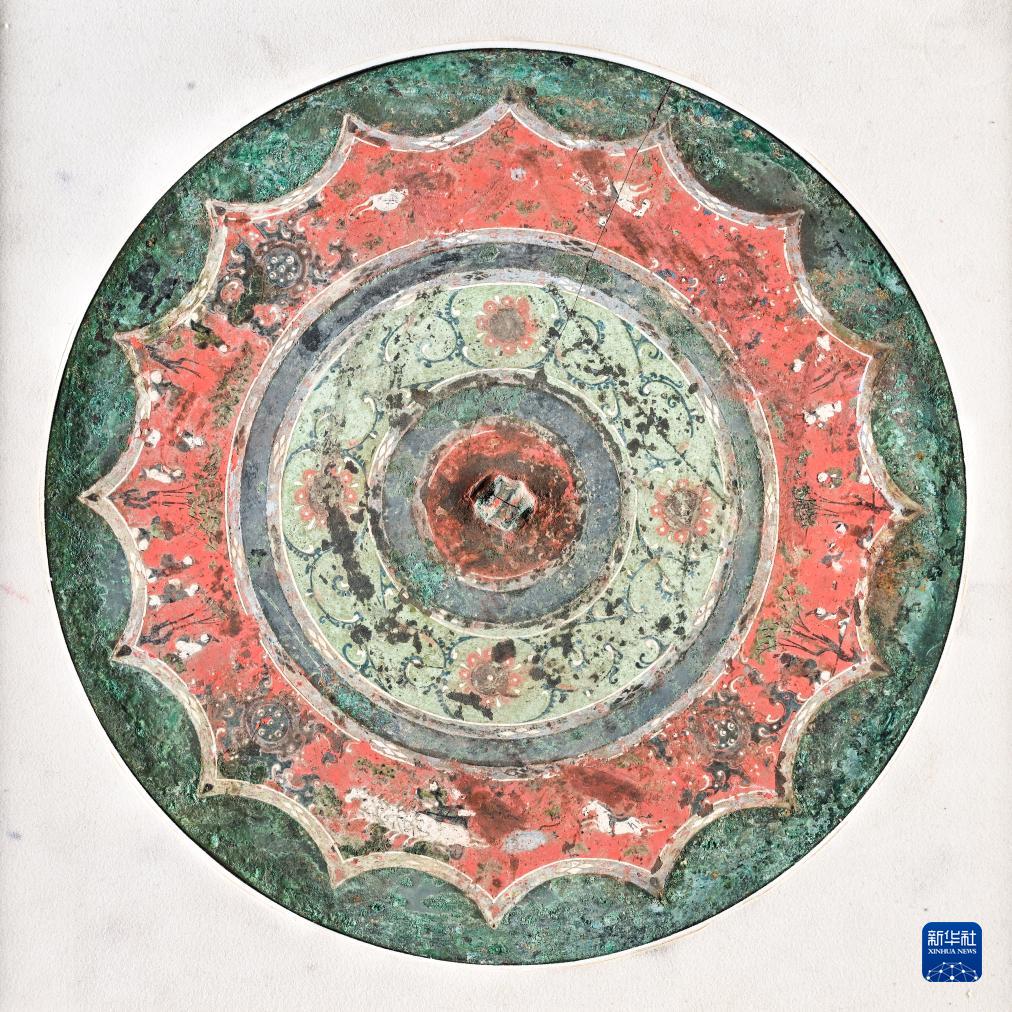 銅鏡是古代妝容工具,具有重要的藝術和科學價值,彩繪銅鏡是銅鏡中的珍品。1963年在陜西西安紅廟坡村出土的西漢彩繪人物車馬鏡,距今已有2000多年歷史,色澤艷麗,精美絕倫,被視為中國古代彩繪銅鏡代表作之一,入選國家文物局發布的《第三批禁止出境展覽文物目錄》。