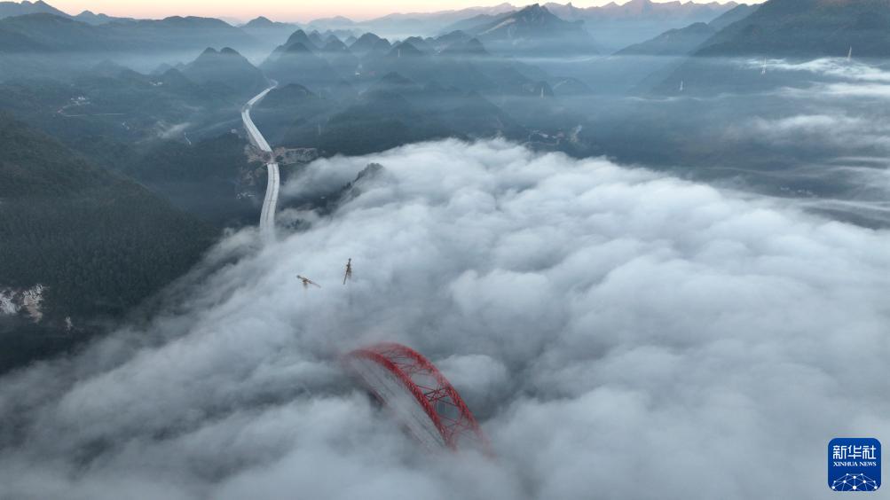 這是11月20日拍攝的建設中的溇水河特大橋(無人機照片)。