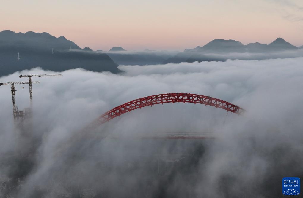 這是11月20日拍攝的建設中的溇水河特大橋(無人機照片)。