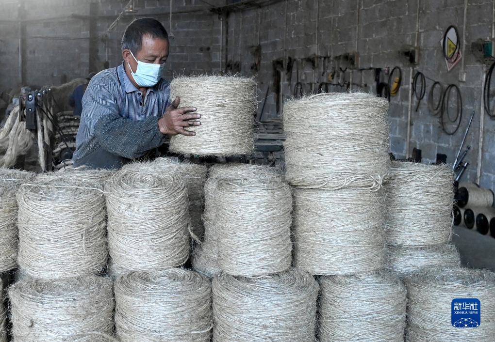 11月20日,在廣西平果市舊城鎮(zhèn)一家企業(yè),工人在搬運劍麻產(chǎn)品。