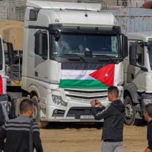 來自約旦的野戰(zhàn)醫(yī)院設(shè)備經(jīng)由拉法口岸進(jìn)入加沙